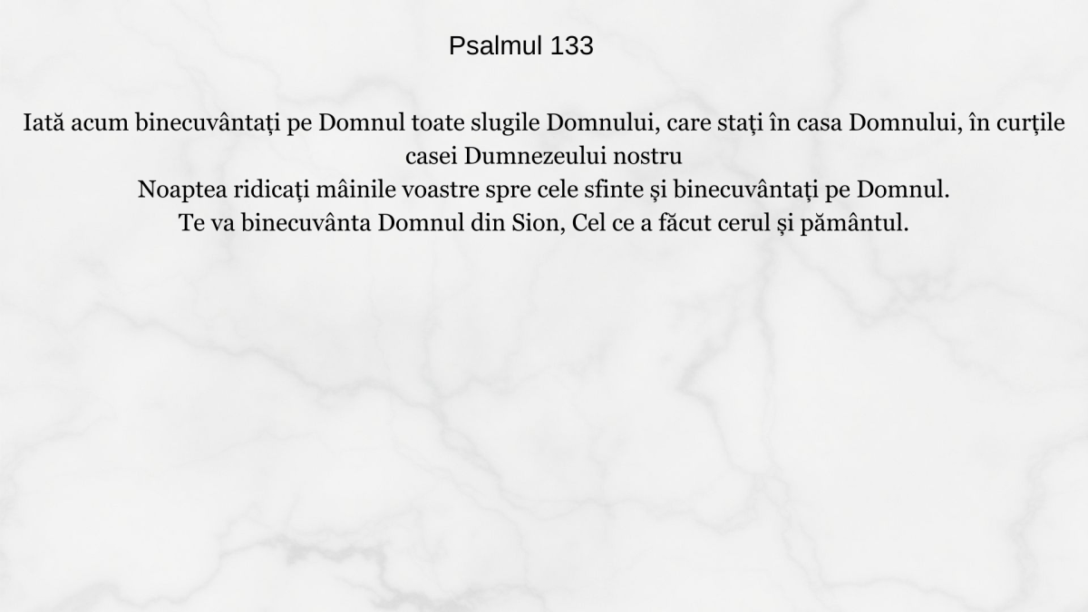 Iată acum binecuvântaţi pe Domnul toate slugile Domnului, care staţi în casa Domnului, în curţile casei Dumnezeului nostru Noaptea ridicaţi mâinile voastre spre cele sfinte şi […]